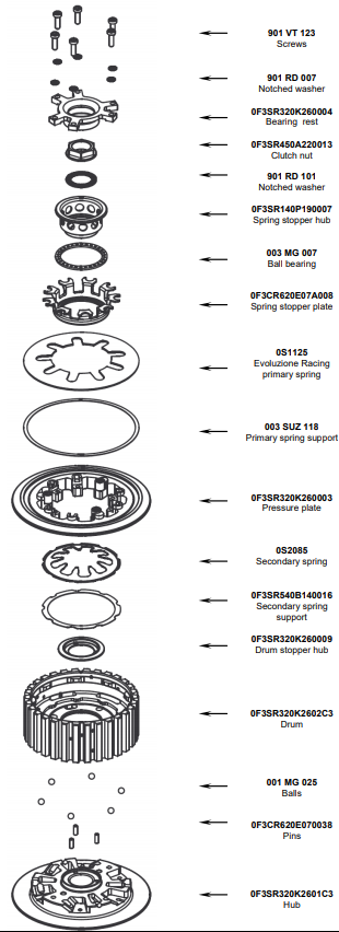 - Improved feeling when loosening the clutch lever Thanks to the Membrane springthat avoids tumbling the pressure plate