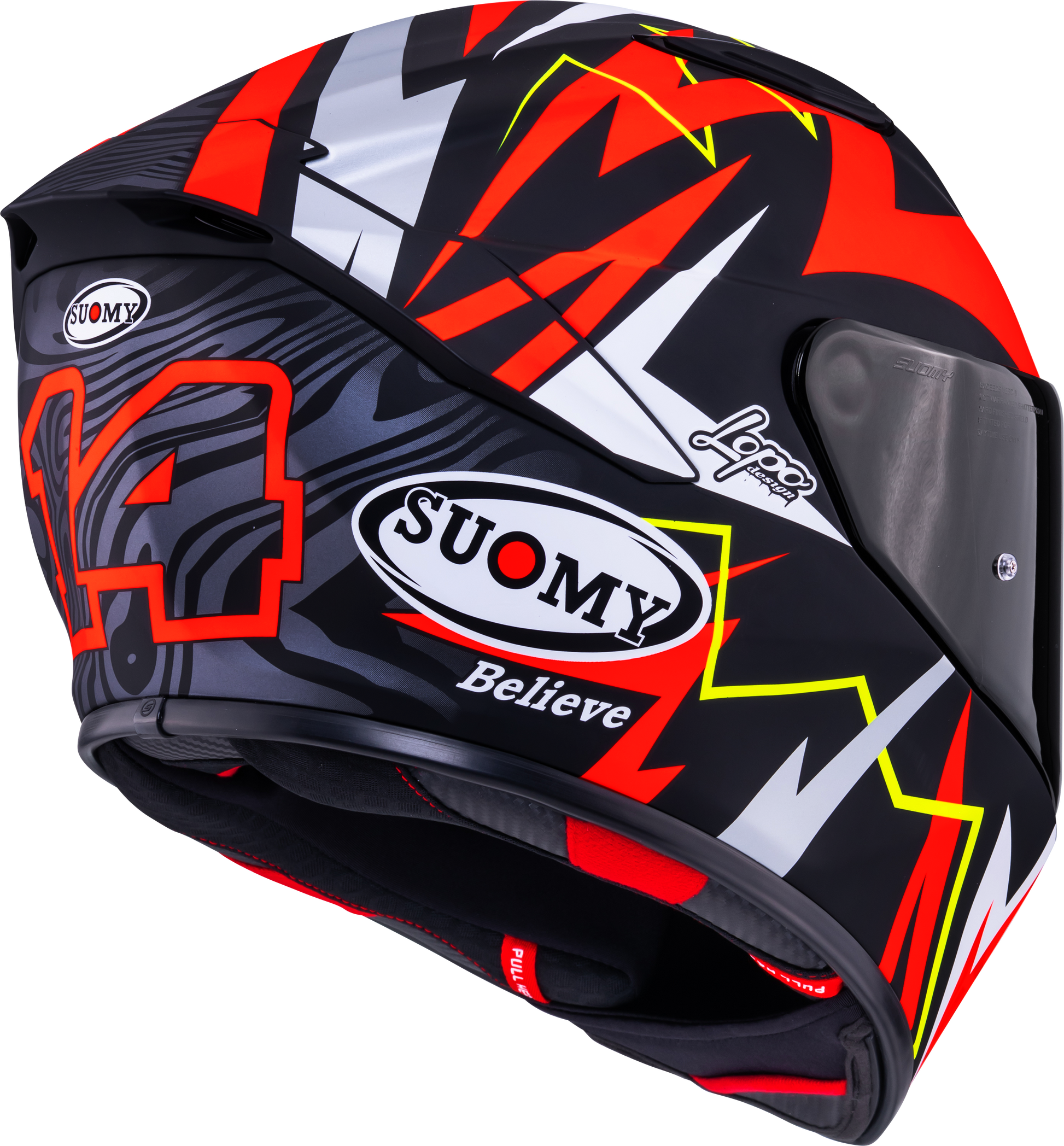 The Suomy Track-1 Sam Lowes Replica 2025 brings Moto2 racing straight to the street. The matte red combined with the distinctive Lowes design elements creates an aggressive, professional racing look.