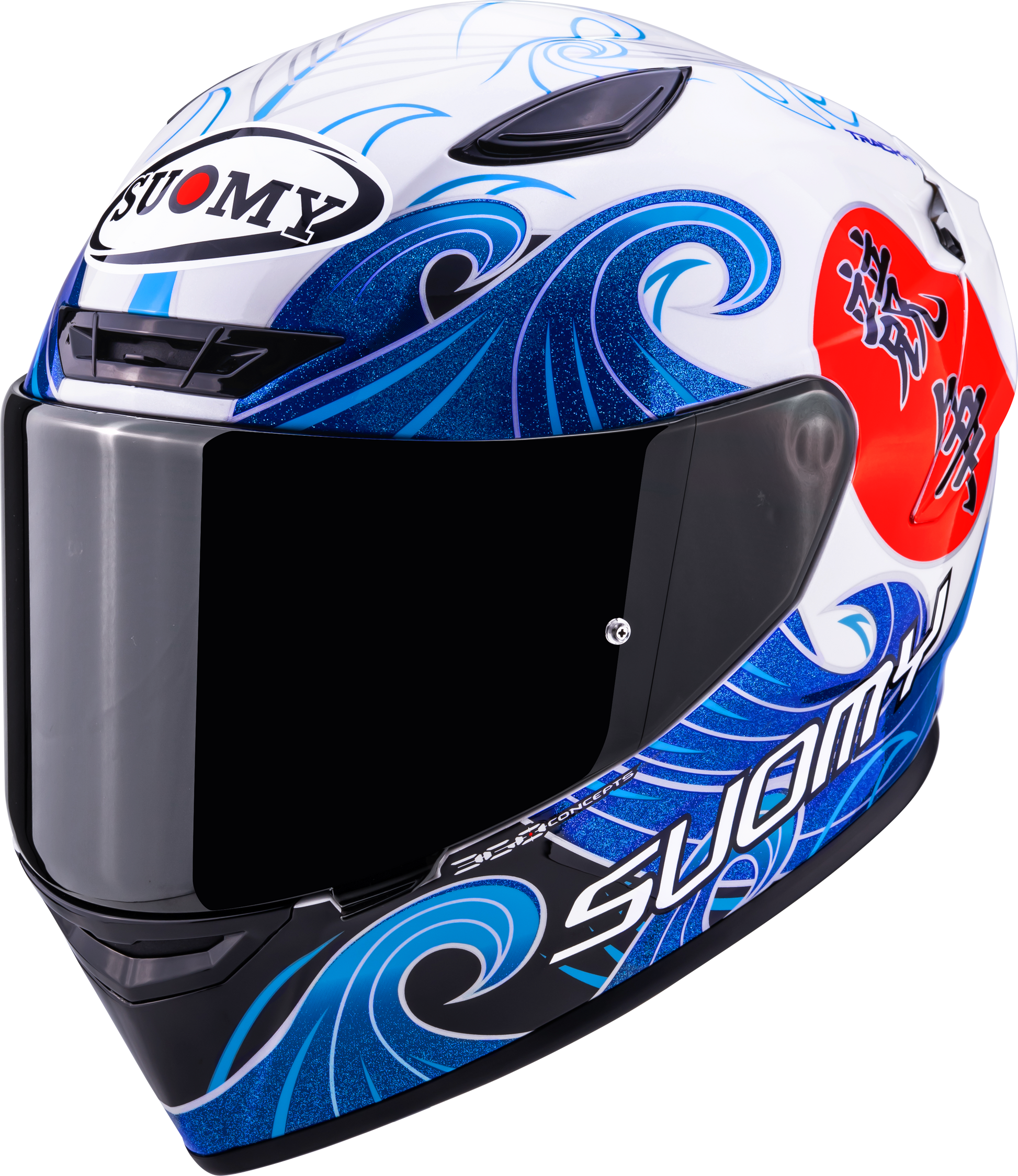 The Suomy Track-1 Waves White combines a fresh, bright design with real racing performance. Thanks to its Tricarboco shell, huge field of vision, Pinlock 70, perfect aerodynamics, and premium inner lining, this helmet is the ideal choice for riders who demand lightness, visibility, and style.