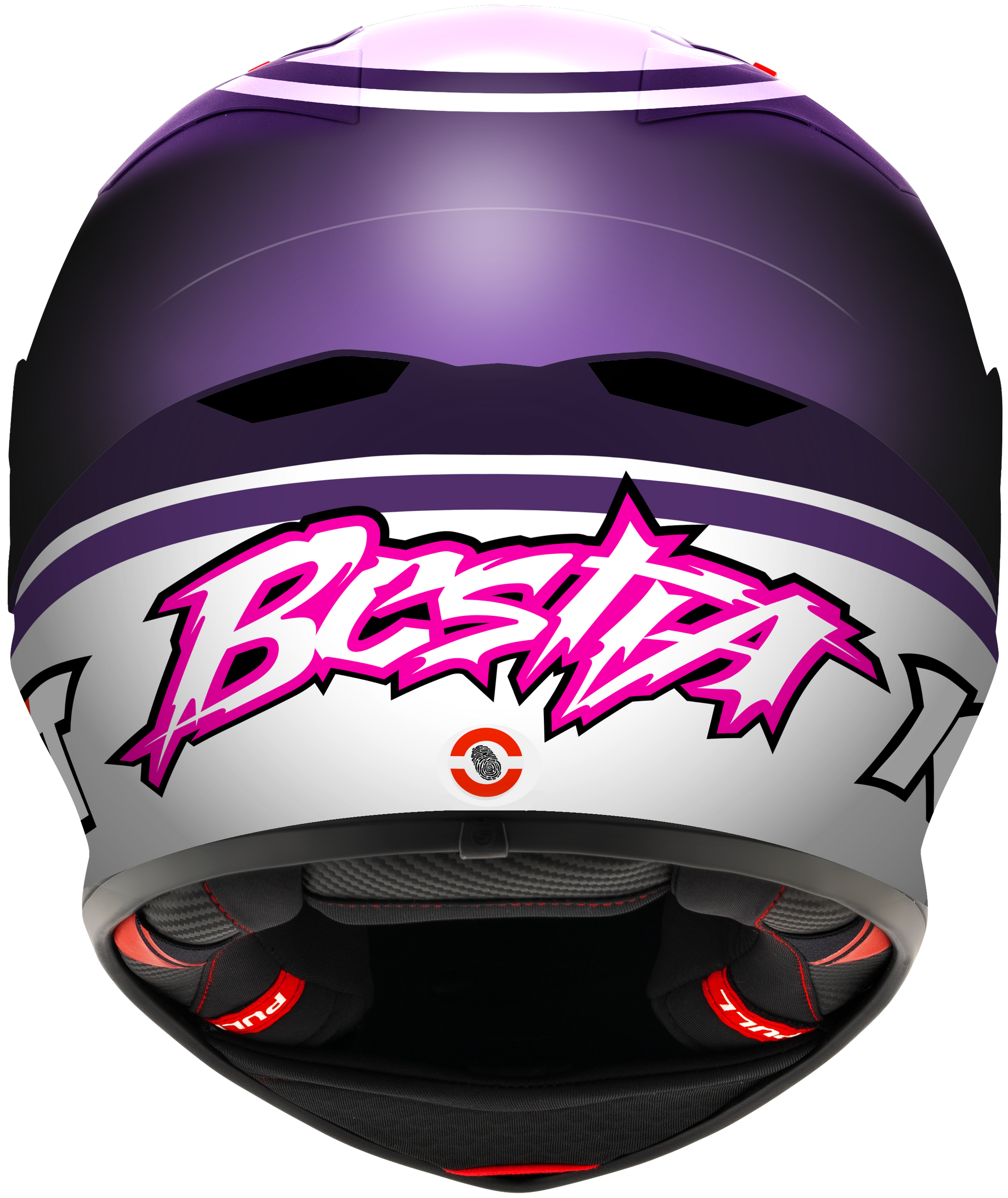 - O sistema de retenção de Duplo D-Ring garante um ajuste seguro e estável do capacete, mesmo em manobras extremas de corrida.